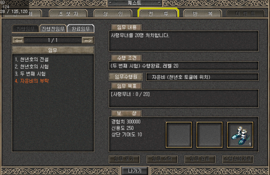 거상 - 퀘스트 - 천년호 - 4. 자운비의 부탁
