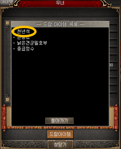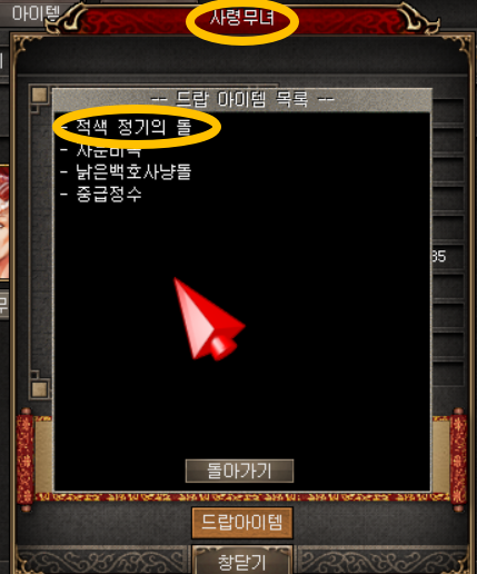 1-2 사령무녀 드랍템 - 적색 정기의 돌