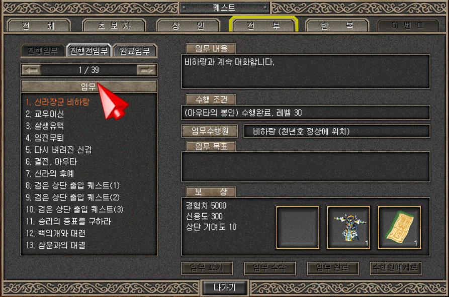 거상 - 퀘스트 - 천년호 - 6. 신라장군 비하랑