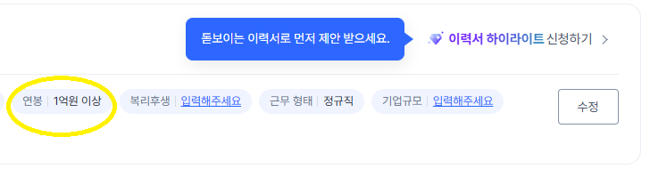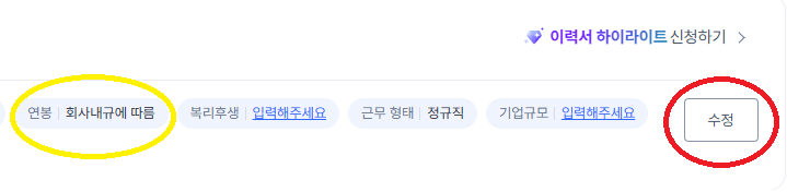 최근 사람인을 로그인했더니, 사람인 이력서에 연봉 수정하는 방법이 바뀌어서