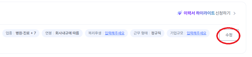 6. "희망근무조건"의 수정을 누르세요.