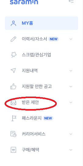 3."MY홈"에서 "받은 제안"을 선택하세요.