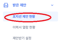 4."받은 제안"에서 "포지션 제안 현황"에서 "수정"을 클릭하세요