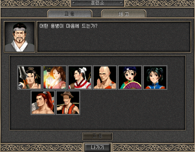 용병을 3명 고용한 뒤에 교관_한일에게 돌아옵니다.