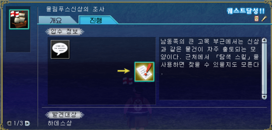 대항의시대 온라인 퀘스트 - 모험 - 올림푸스신상의 조사 ★★★