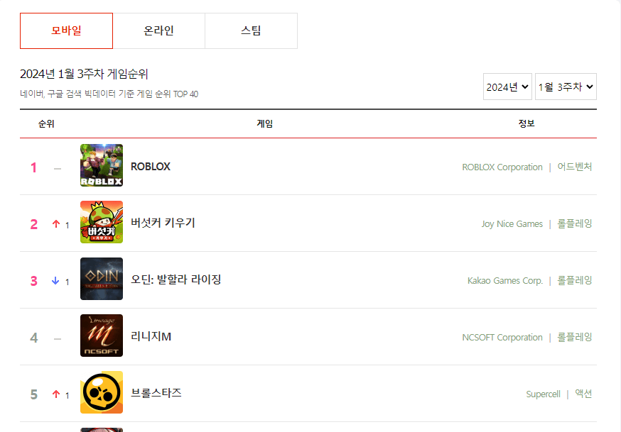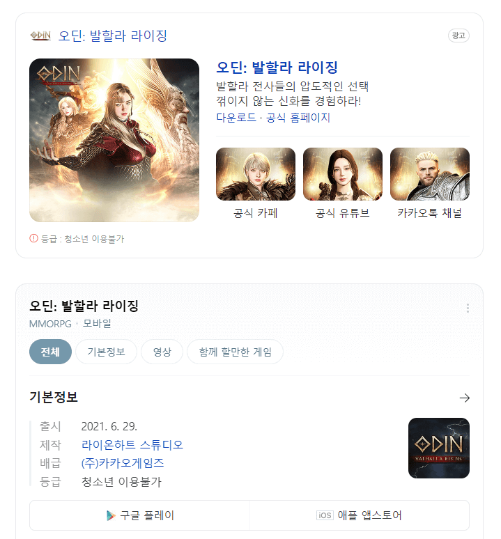 현재 오딘의 모바일 게임 순위를 알아보고자 검색을 했더니 현재 3등의 위치를 하고 있습니다.